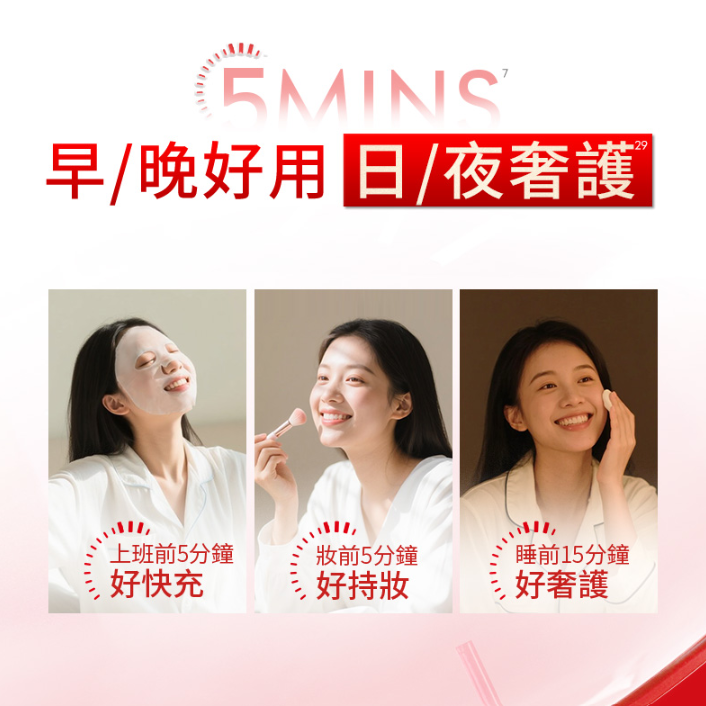 不少女生會擔心:敏感肌使用後會不會出現不適?紅金面膜13無酒精、無人工香精、無尼泊金酯類防腐劑,經專業測試,敏感肌也可安心使用12。使用時,只需將面膜輕敷於面部,用手指輕輕按壓使其更貼合肌膚,靜享5-15分鐘,然後取下即可。不論是返工前為肌膚快速叉電,恢復神采;或用作妝前保濕,讓底妝更服貼持久;還是作為夜間護膚的最後一步,紅金面膜都能喚醒你的疲憊肌,讓你隨時敷出好狀態!