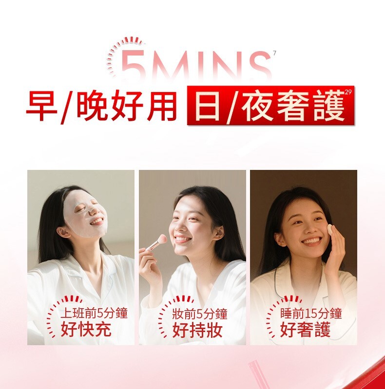 - 突破性冰絲感凝膠膜布: 讓肌膚能「呼吸」的冰絲感凝膠膜布,透氣、緊貼每寸肌膚,每塊蘊含約30g精華液。